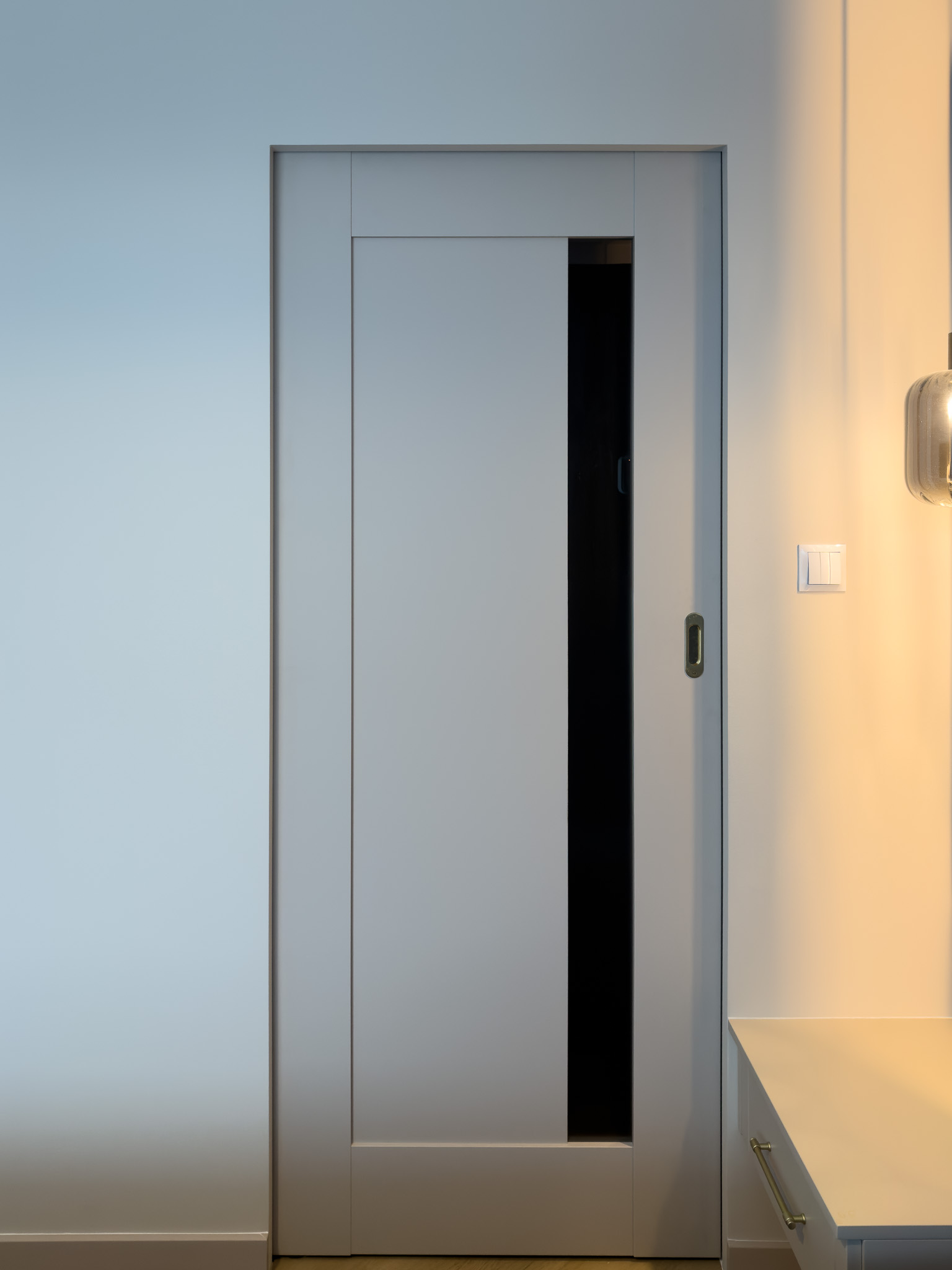 Za meble odpowiadał Krzysztof Kulesza Kulmeble. Wykonawca zabudowy na wymiar, która płynnie integruje się z liniami ścian, nadając wnętrzu monolityczny charakter.